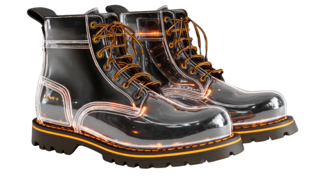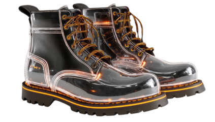 Transparent work boots with glowing soles
