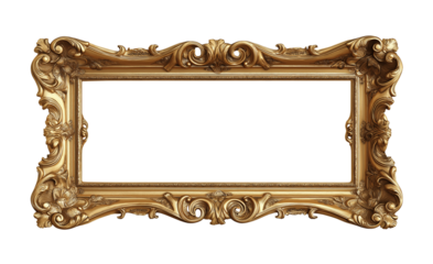 Golden vintage picture frame with a blank white background, isolated on white. Detailed illustrations, high-resolution, professional photograph, very sharp focus, hyper-detailed, intricate details,