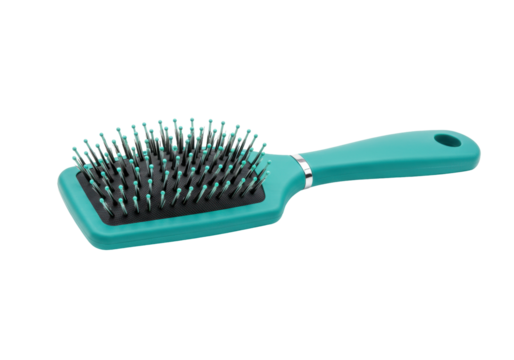 Stylish light blue and wooden hairbrush for gentle detangling, On Transparent Background