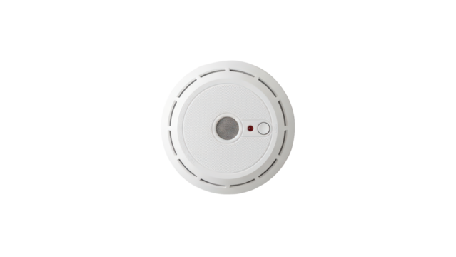 White smoke detector device with a red light for residential fire safety security and emergency prevention system