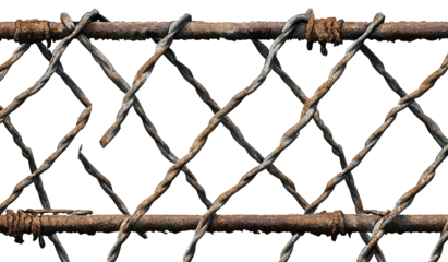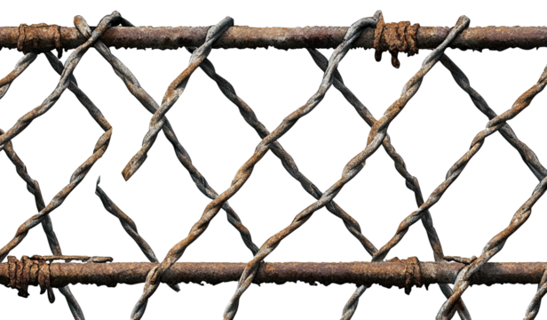Rusted, aging chain-link fence against a dark, opaque backdrop