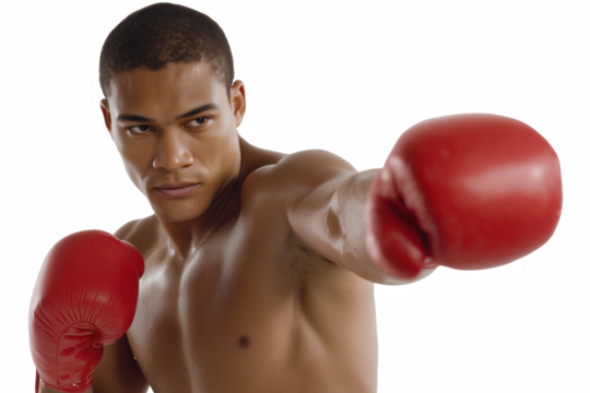 Shirtless athlete lifting dumbbell isolated on transparent background