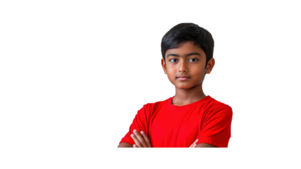 Boy wearing crown flexing muscles in blue shirt transparent background