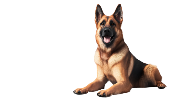 A majestic german shepherd dog sitting attentively, isolated on transparent background