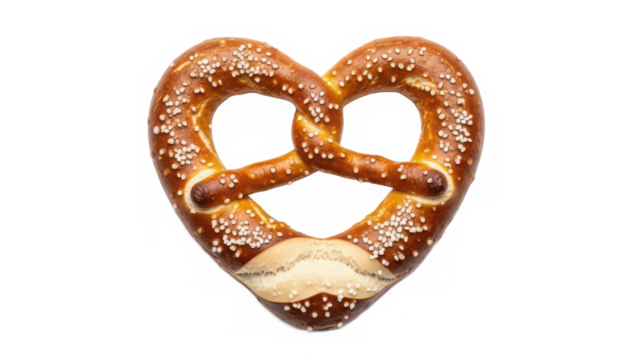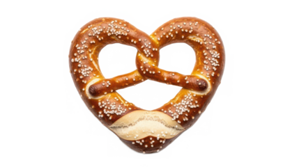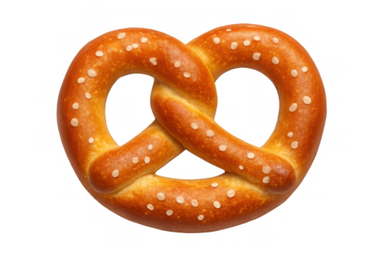 Freshly baked golden brown pretzel with coarse salt on transparent background, traditional german snack food concept
