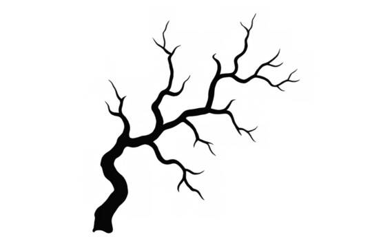 Dramatic bare tree silhouette with twisting branches, perfect for Halloween or spooky forest scenes