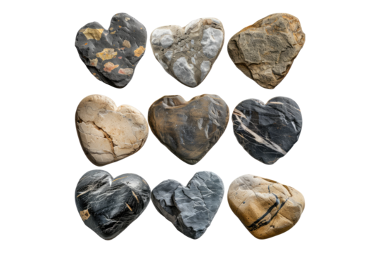 Set of heart shape rocks isolated on transparent background