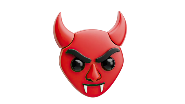 Red Devil Emoji with Horns and Fangs