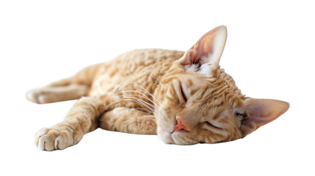 Devon Rex cat reaching with paw, playful gesture against transparent backdrop, perfect for pet projects