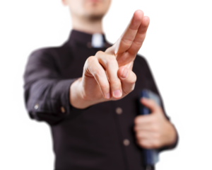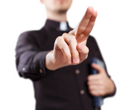 Hand placed delicately on bible with transparent background