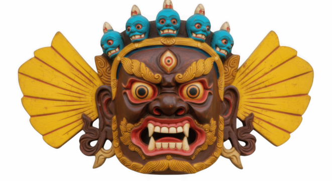 Furious Tibetan Mahakala Mask Isolated on Transparent PNG Background