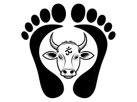 Sacred Footsteps and the Holy Cow: An illustration of footprints embracing a serene cow, a visual expression of devotion and spirituality.