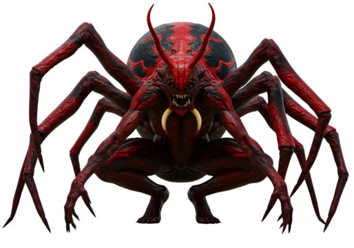 Demonic Spider Creature with Red Armor and Menacing Claws in Dark Background
