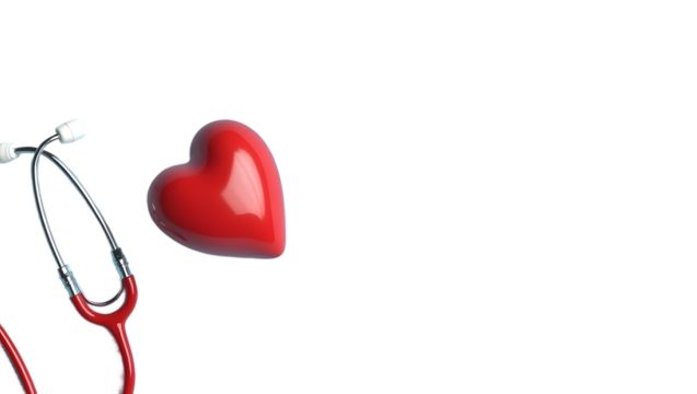 Healthcare symbol stethoscope and red heart representing cardiology wellness and medical examination