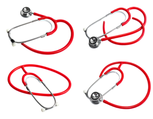 Four red stethoscope views on black background