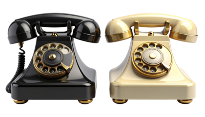 Vintage black rotary telephone isolated on transparent background in studio shot