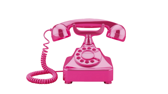 A classic red rotary phone isolated on a transparent background