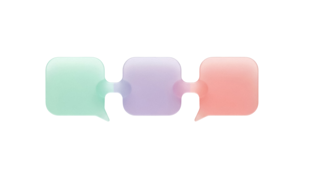 Isolated connection of three gradient dialog balloons for communication, conversation