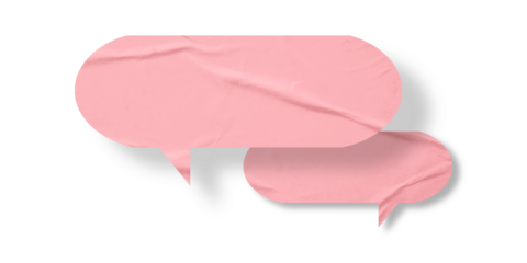 Pink speech bubble crumpled paper isolated on transparent background