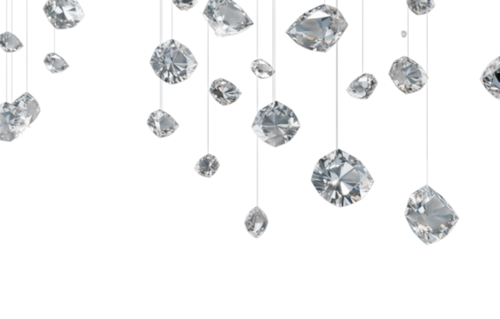 Hanging diamonds on strings against a  in a vertical shot transparent background png