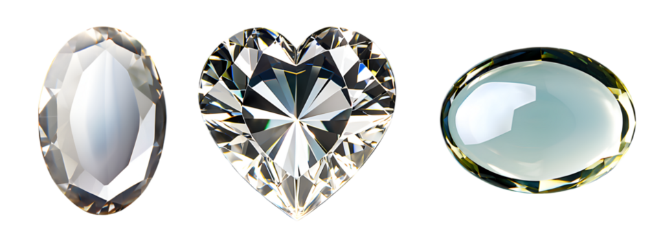 diamond stone collection, heart, round, oval shape gloving gem stones, isolated on transparent background, icons logo vector png