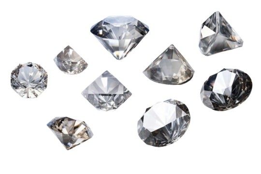 Collection of Diamond Crystals. isolated object, transparent background
