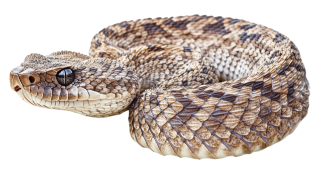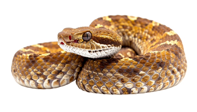 coiled rattlesnake , isolated on white background, transparent PNG,