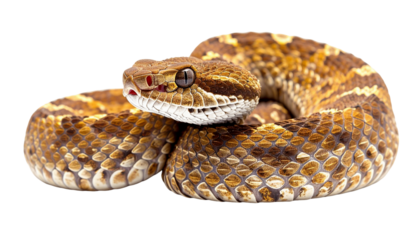 rattlesnake coiled up, ready to strike, detailed scales and texture, isolated on white background