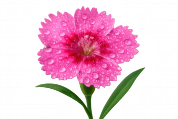 Delicate pink dianthus blossom glistening with water droplets, pristine transparent backdrop showcasing floral detail
