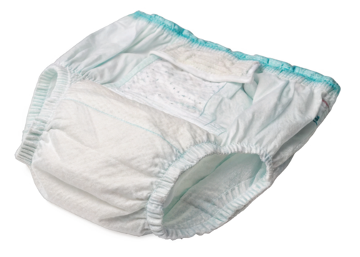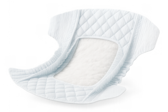 Disposable baby diaper with absorbent layers, providing comfort and hygiene for infants and toddlers, transparent background