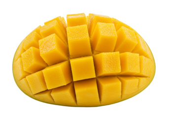Sliced and diced mango fruit isolated on transparent background, showcasing its vibrant color and juicy texture