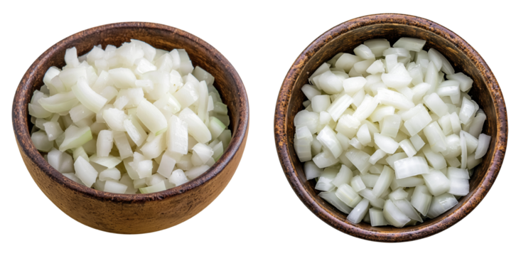Rustic Bowls with Diced White Onions, Isolated on Transparent Background, Perfect for Ingredient Illustrations and Cooking Tutorials