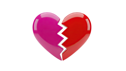 3D Broken Heart Symbol on transparent background