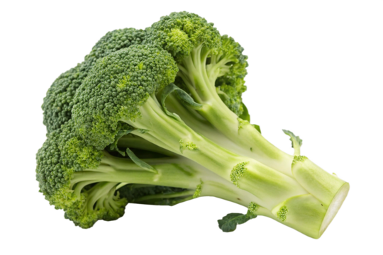 Fresh green broccoli floret isolated on white background, healthy organic vegetable ideal for cooking, diet plans, vegan recipes, food blogs, nutrition articles, grocery ads, and farm produce design