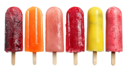 set of popsicles, isolated on transparent background. element for summer poster or background, greeting card. Sweet food, containing sugar. Refreshment during hot summer days. Different flavors.