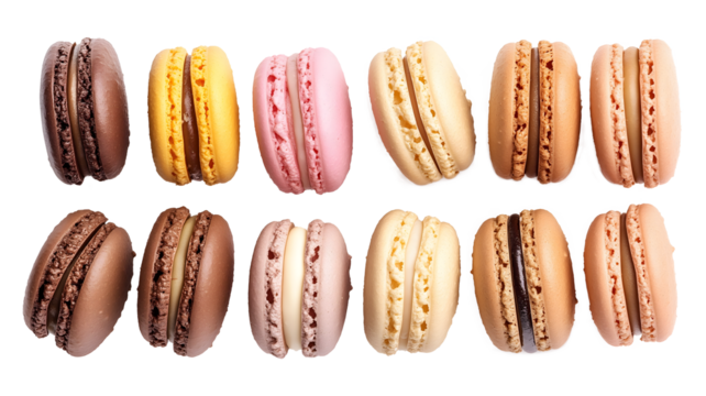 Cupcake muffin with icing frosting on transparent background cutout. PNG file. Many assorted different flavour.