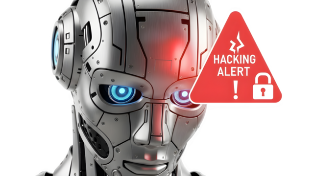 Robot head with hacking alert on isolated on transparent background