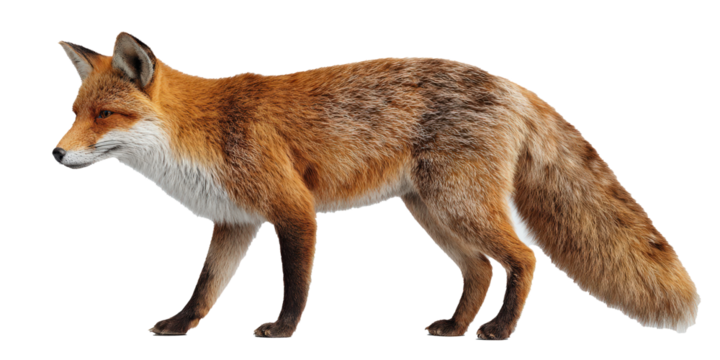 Majestic, powerfully built gray wolf with thick, textured fur and piercing amber eyes stands in a confident, alert pose, digitally composited against a chaotic,, isolated on transparent background.