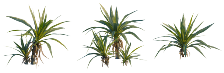 Cordyline indivisa tree, front view, cutout, isolate, Elevation good for architecture visualization, Set of agave plants with green leaves on transparent background