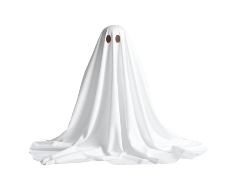 3d rendering of a cute, cartoon ghost floating against a transparent background, ideal for halloween projects