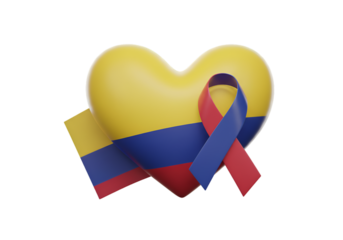 Colombia Flag Heart Shape 3D Render Illustration on Transparent Background