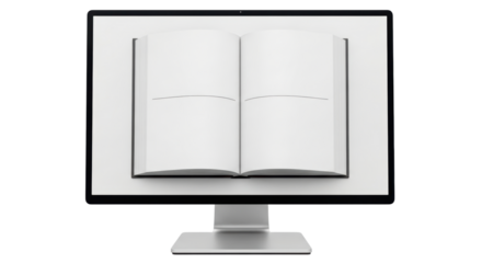 Isolated open book floating on computer screen, modern display mockup, digital publication