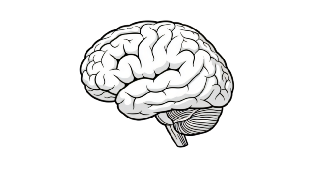 Minimal brain vector illustration with transparent white background and no gradient, ideal for digital use in medical apps, websites, education, and presentations.