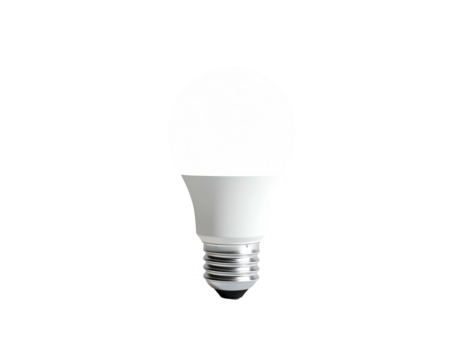A bright white LED light bulb glowing against a dark background