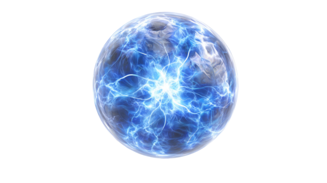 Glowing electric plasma sphere isolated on white background, high energy lightning core for science fiction concepts, futuristic power and digital illustration