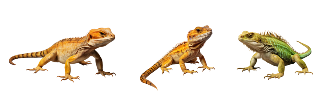 Yellow blue lizard Panther chameleon isolated on transparent background