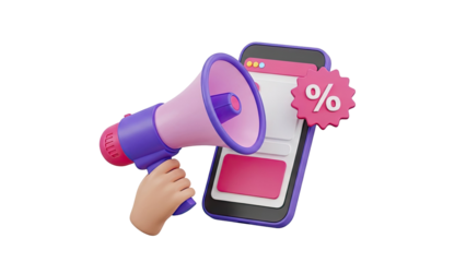 3D Megaphone Icon with Lightning Bolts and Website Elements