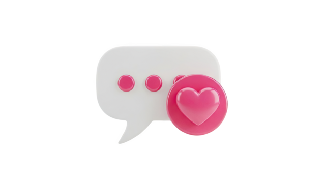 3D Social Media Icons: Hearts and Chat Bubbles on transparent background