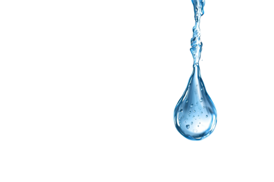 Blue transparent water drop on white background