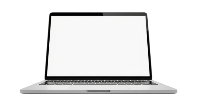Modern Silver Laptop Computer with Open Blank Screen Isolated on White for Website Mockup and Business Technology Concepts